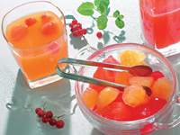 gyümölcslevet vagy -velőt teszünk bele, mert így nem hígul a víztől a leves.