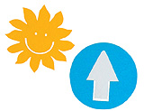 Másoljuk át a sablonokat megfelelő színű fotókartonra, és vágjuk ki őket. A jelölt részeket a napforma száját és szemét, illetve a nyíl szárát sniccerrel metsszük ki. A nyilat vágjuk ki fehér öntapadós fóliából és ragasszuk a kartonra. Ezekhez a könyvjelzőkhöz hasonlóan bármilyen más formát is kreálhatunk.