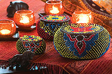 Az indonéz szigetvilág élénk színû virágaival díszített, fonott kosarak azoknak készültek, akik vonzódnak a távol-keleti tárgyak iránt. Füstölõk, illatos teák vagy a kis fiolás illóolajok tárolhatók bennük.