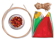 Fújjuk fel a labdát, és egy szál nádat kétszer-háromszor körbetekerve készítsünk akkora gyűrűt, amelyet ráültethetünk a gömbformára. A kilógó száldarabot hajlítsuk a labda alá, és az ellenkező oldalon bújtassuk át a kezdkoszorú szálai között (2a.). Addig ismételjük ezt a műveletet, kusza vezérszálakat hajlítva a kosárnak, amíg a szál tart.