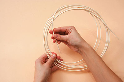 Áztassuk be a vastagabb nádat 10-15 percre. Célszerű a szálakat különválasztani, majd egyesével összetekerni, mert így jobban elfér a mosdótálban, és könnyebben kivehetjük a soron következő gyűrűt.