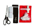 A mellékletben megadott sablon alapján, körben 1 cm-es varrásszélességgel vágjuk ki a piros testet, a fekete fejrészt, a fenéklapot és a pöttyöket. (A pöttyök szabása előtt felvasalhatjuk a plüssre a közbélést, ettől jobb tartása lesz az anyagnak.) Varrjuk át kétszer-háromszor a szárnyak középvonalát fekete cérnával, majd színoldalukkal egymásra fektetve varrjuk össze a testet és a fejet, a pöttyöket pedig színükkel felfelé, sűrű cikcakköltéssel a hát színoldalára. Nagy öltéstávolsággal, nem túl feszes szállal, két sorban varrjuk körbe a katica szélét.
