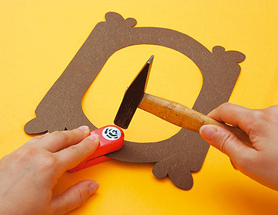 Az üveg alatt a formára vágott képkeretek domború mintákkal mutatósak, de visszafogottak, a kivágott motívumok eltérő színű papírral kombinálva pedig sokkal karakteresebb képet mutatnak. A forma- és saroklyukasztók, mintás dekorollók vagy a domborító eszközök segítségével gyerekjáték lesz a munka.