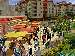 A koncepció tervezői nagy figyelmet fordítottak a 21. századi látványvilággal és térstrukturálással szemben támasztott elvárások megvalósítására is, a városközpont első ütemében megépülő négy társasház különleges homlokzati kialakítást kap: a régi bontott pecsétes tégla-burkolatot hozzák összhangba az üveg és fém portálszerkezettel.