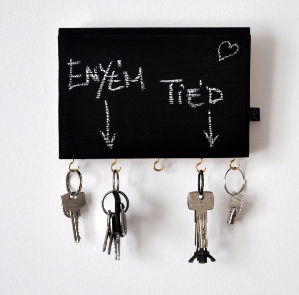 Amire szükséged lesz: egy darabka fenyőléc, táblafesték, kampós csavarok, fogó, 180-as csiszolópapír és egy képakasztó.