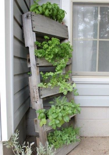 Az egyik legolcsóbb megoldás a használaton kívüli raklapos függőkert. A raklapok rövidebb deszkáiba helyezett műanyag virágládák alkotta függőleges kert különleges színfoltja a kertnek, terasznak. A raklapot színesre, sárgára, kékre is festheted.