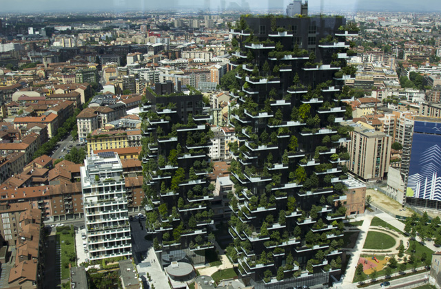 A teraszokon betonteknőkben laknak majd a fák, melyeket automatikus rendszerrel öntöznek és ipari alpinisták tartják karban.