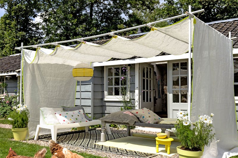 1. Ha fák is tartoznak a kertedhez, szuper ötlet egy nagy ponyvát feszíteni közéjük! Bohém hangulatot kölcsönöz a kertnek: