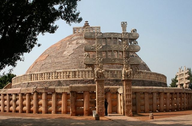 India egyik legrégebbi kőépítményének magját egy téglából készült kupola képezi. Ezt a kupolát a Kr.e. 2. században emeltette Buddha tiszteletére Asóka császár, aki az uralkodása alatt a buddhizmust államvallássá tette, és Sáncsiban egy hatalmas vallási műemlékegyüttest építtetett – köztük a már említett téglakupolát. A sztúpa fölé később egy nagyobb kupolát rakatott Asóka immár kőből, amely megóvta az eredeti kupolát az időjárás és az idő rombolásától. Az épület kitűnő állapota azonban nem csak a nagyszerű építészeti munkának köszönhető, hanem annak, is, hogy a buddhizmus indiai hanyatlása után a 13. századtól kezdve Száncsi és templomai évszázadokon át elfeledve rejtőztek a dzsungel mélyén, és csak 1818-ban bukkantak rá újra. Asóka egyébként rutinos sztúpa építő volt: Száncsiban nyolc ilyen vallási emlékhelyet (ebből három maradt fent), az országban pedig összesen további 84 ezer (!)köszönheti neki a létét. A sztúpa egyébként eredetileg egy földhalom volt, amelybe Buddha relikviáit temették. A legenda szerint Buddha halála után a testét elhamvasztották, és a hamvait nyolc sztúpába osztották szét. Az i. e. 3. században Asóka felnyittatta ezeket a sztúpákat, és a hamvakat szétosztotta az általa épített több ezer sztúpában. A buddhizmus terjedésével más ázsiai országok is átvették a sztúpát, de közben funkciója és kinézete megváltozott; ennek eredménye a pagoda.