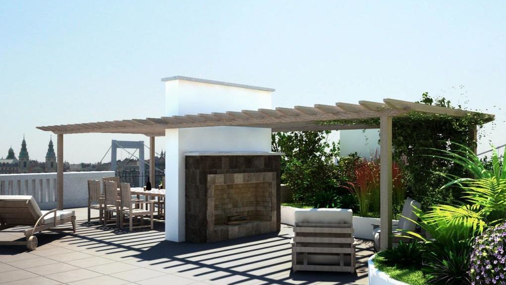 A lakás az Erzsébet híd budai hídfőjénél van. A 160 négyzetméteres penthouse-hoz tartozik a 200 négyzetméteres tetőterasz, ahonnan az egész pesti oldal látható. (A hirdetés itt található)
