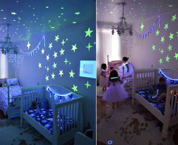 Gyerekszobában nagy sikert arathat a csillagokkal és bolygókkal teli fal, illetve plafon, főleg, ha hologramos matricákat ragasztotok fel.
