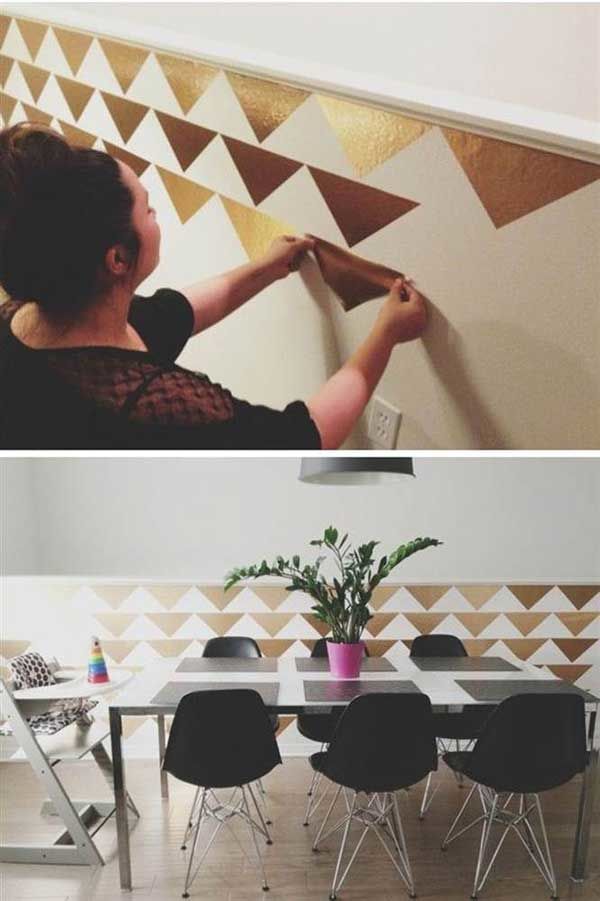 Ez a falminta már nagyobb előkészületet igényel. Előre le kell mérni, mi hány centi lesz, majd meg kell rajzolni a körvonalakat, amire aztán a matrica vagy tapéta kerül. A végeredmény viszont nagyon megéri a bíbelődést.