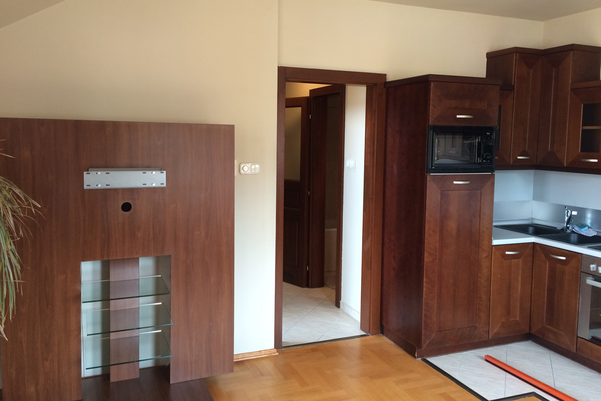 A budapesti, tetőtéri lakást a harmincas éveiben járó Gergő vásárolta. A fürdőszoba kivételével beköltözhető lett volna, de Gergő szerette volna, ha a lakás teljes stílusváláson, felújításon esik át. „Mindent eltüntettünk ami eredetileg a berendezés része volt, új lett a konyhabútor, a burkolatok, új színeket választottunk és természetesen az elrendezés sem maradt érintetlen” – mondta Koppány Kata, lakberendező. „A tulajdonos meleg, otthonos színeket szeretett volna, így a föld színei jelennek meg elsősorban.” A lakás eredetileg egy nagyon pici előszobából, kis nappali-konyhából, fürdőszobából, külön zuhanyzó-WC-ből és a lakáshoz mérten nagy hálószobából állt.