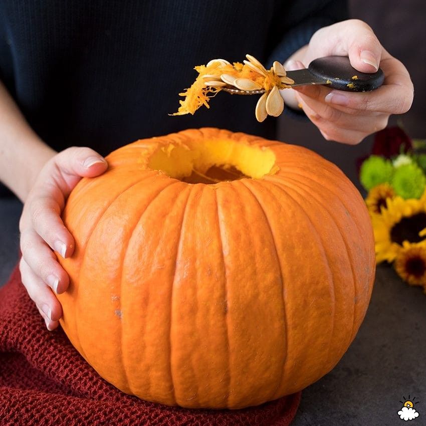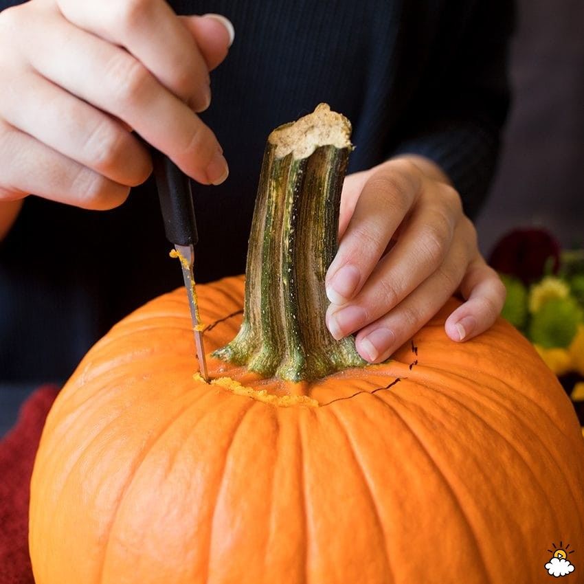 Faragd ki a körvonal mentén a sütőtököt, és tisztítsd meg jól a nyílás széleit.