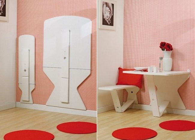 Az összecsukható asztalka székekkel tökéletes megoldás a kis lakásban.