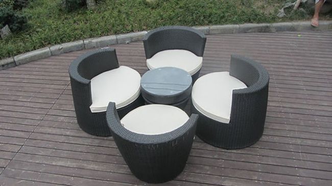 Hasonló kialakítással készült ez a helytakarékos, négy széket, heverőt magában rejtő szék, mint az előző, asztalos megoldás.