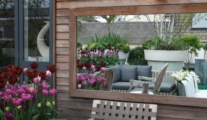 Ha szeretnénk egy kicsit tágasabbá varázsolni a térérzetet az erkélyen vagy a kiskertünkben, nincs más dolgunk, mint egy tükröt applikálni a ház falára.