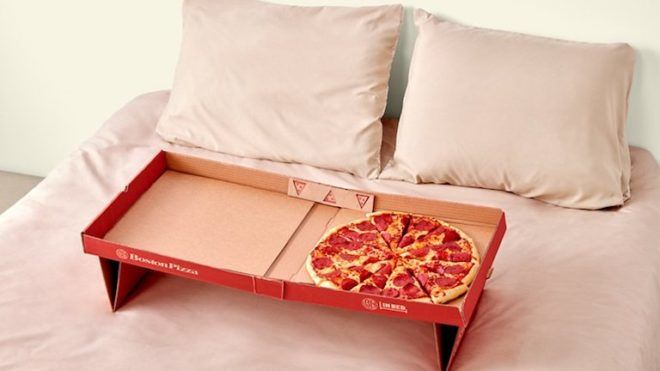 Egy kanadai pizzéria, a Boston Pizza odafigyel vásárlóinak igényeire. Ki ne szeretné az ágyban fekve, házimozizás közben majszolni a rendelt pizzát? Hiszen erre találták ki.