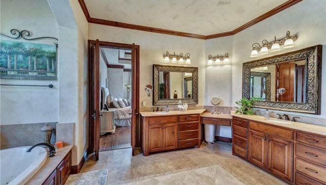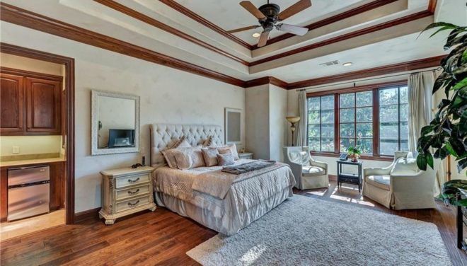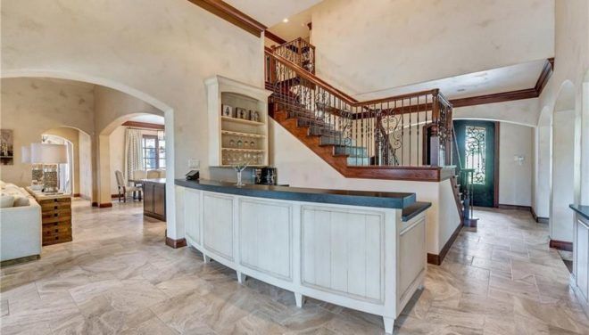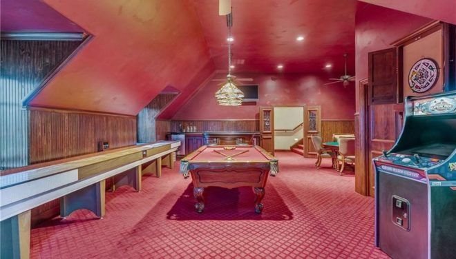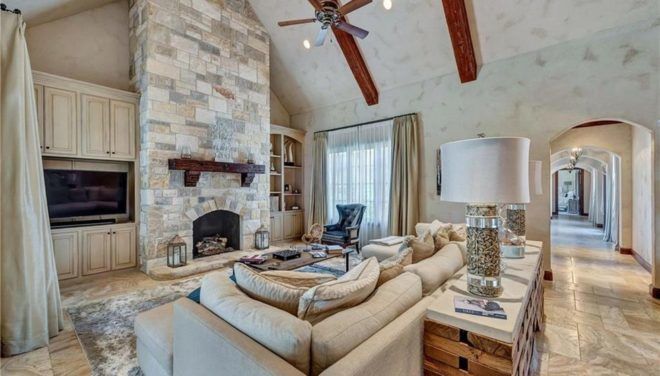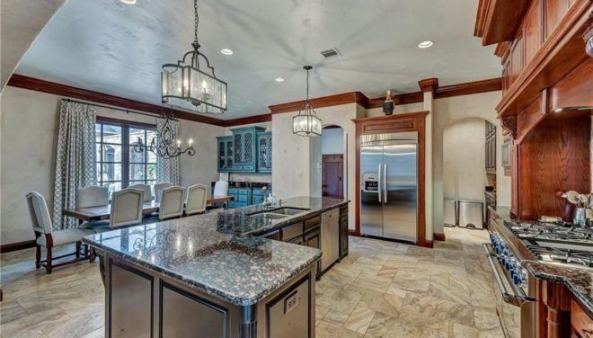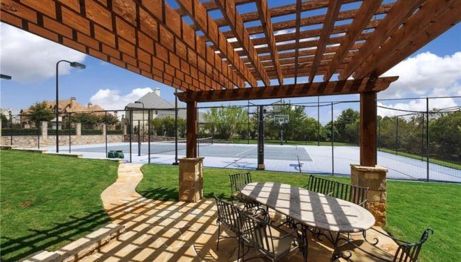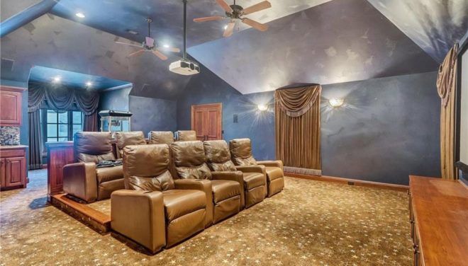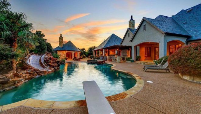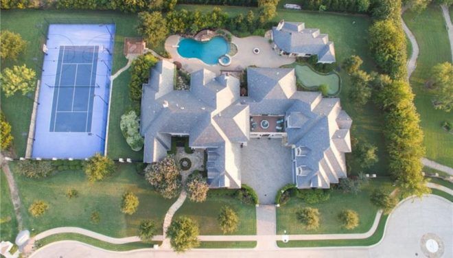 A 3 kocsibeállós, 5 hálószobás, 6 fürdőszobás villához teniszpálya, csúszdás medence, moziterem, golfpálya és játékterem is tartozik. A berendezés mindenhol követi az amerikai családi házak otthonos stílusát, persze luxuskivitelben. Királyi előtér, kuckós, kályhás nappali és gigantikus konyhapult – csoda, hogy még senki nem csapott le rá.