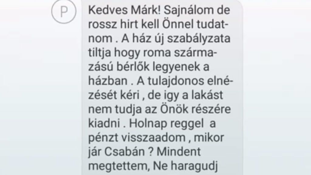 Cigány származása miatt nem vehetett bérbe egy lakást Piliscsabán, ezt állítja egy férfi – derül ki az RTL Híradó riportjából. Elmondása szerint az ingatlanközvetítővel már meg is egyeztek a bérletről, ám hazaérve egy sms-t kapott, mely szerint a társasház új szabályzata tiltja, hogy romáknak adjanak bérbe lakást, így a tulajdonos sajnálja, de nem tudja részére a lakást bérbe adni, a pénzt is visszaadják.