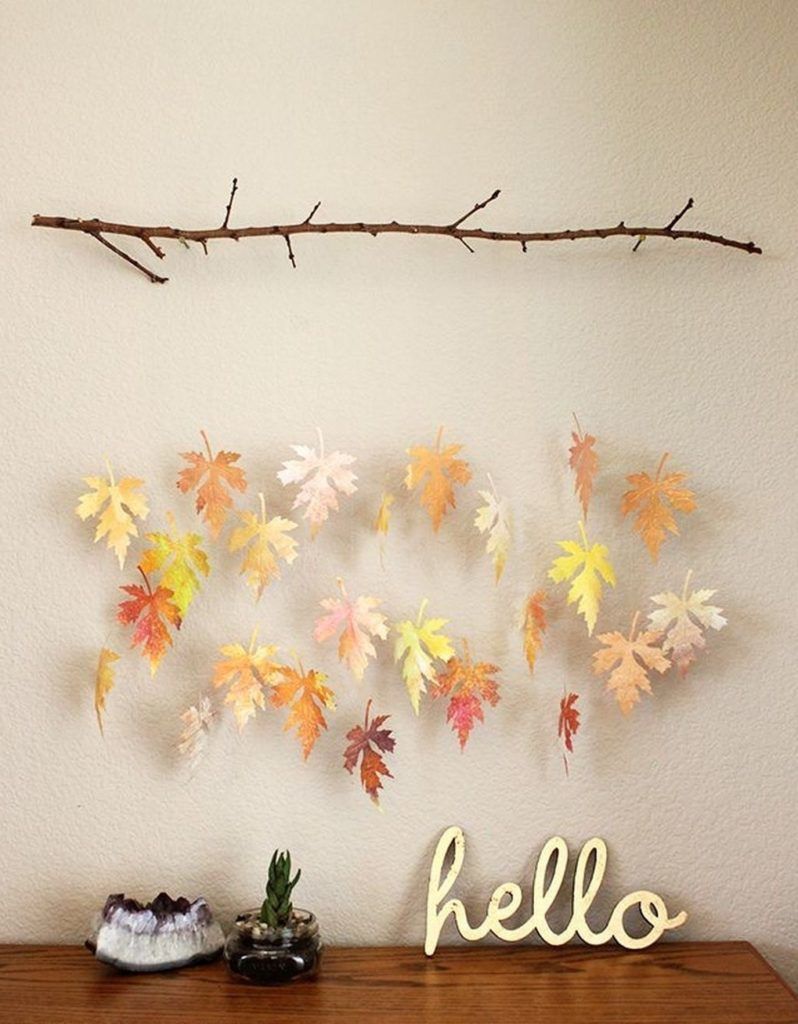 Ilyen dekorációt akár a gyerekekkel együtt is készíthettek, igazi vagy papírlevelekből egyaránt. Az ágat pedig bárhol begyűjthetitek hozzá.