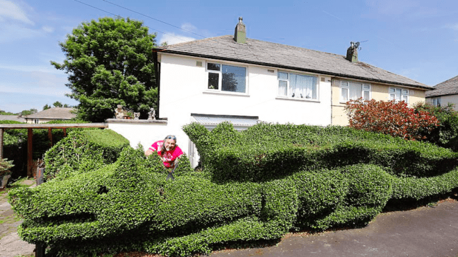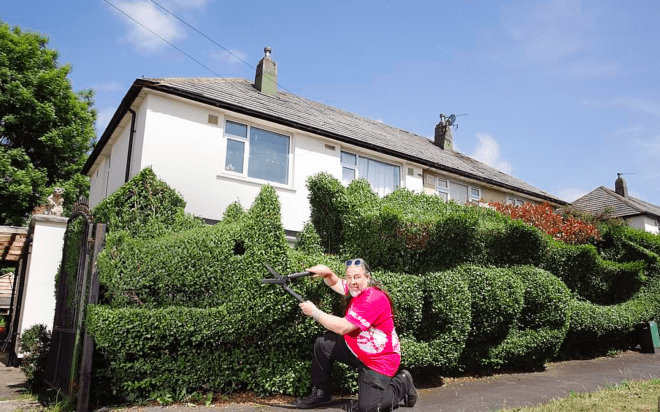 A férfinak nemrég született meg első unokája, ezután kezdett nagyszabású kertészeti projektjébe, azaz: sárkány alakúra nyeste a sövényt az előkertjében. A több, mint 10 méteres kertészeti remekművet mindenféle minta nélkül, pár óra alatt készítette el az újdonsült nagypapa. Azóta több helyen is viszontlátta művét az interneten, hiszen a járókelők szívesen megállnak szelfizni az impozáns sövénysárkánnyal.