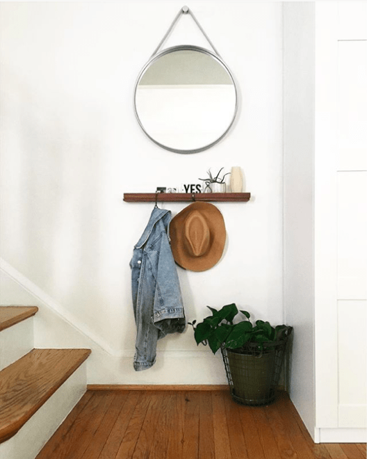 2. A kulcsokat nem csak egy akasztón tárolhatjuk – elegánsabb, ha egy légies polcot teszünk az előtérbe, ami fölé egy tükör is kerülhet.