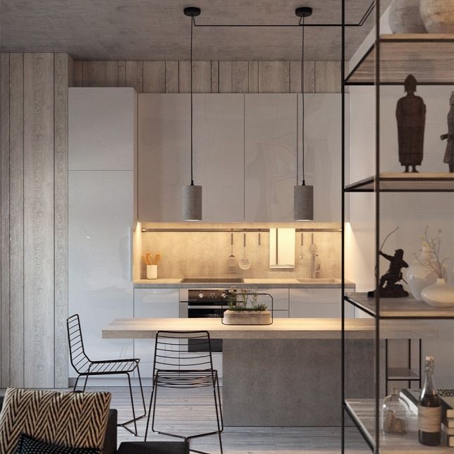 A 43 négyzetméteres lakásban a tervező, Michael Temnikov minimalista megközelítést alkalmazott, egyszerű geometriai formákkal és gazdag textúrákkal.