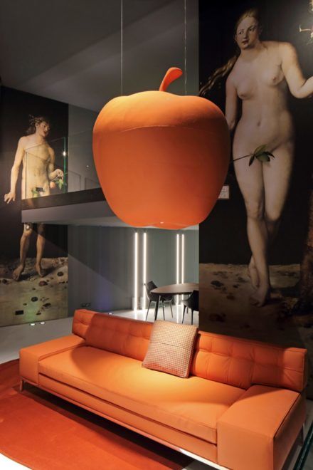 A Cassina párizsi showroomjában a kanapék hátterébe különböző olyan műalkotásokat helyeztek el, ahol az alma áll a középpontban, például Magritte Az ember fia vagy Dürer Ádám és Éva című festményeit.