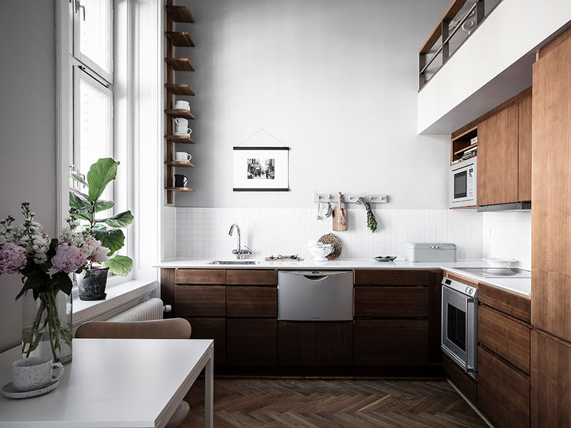 megvannak a funkcionálisan elkülönülő terek, stílusos, mégis letisztult bútorok, a dekoráció pedig ugyancsak telitalálat. A fehér és a barna természetes kettősségére épül az enteriőr, mely párosítás kifejezetten elegáns eredményt szül.