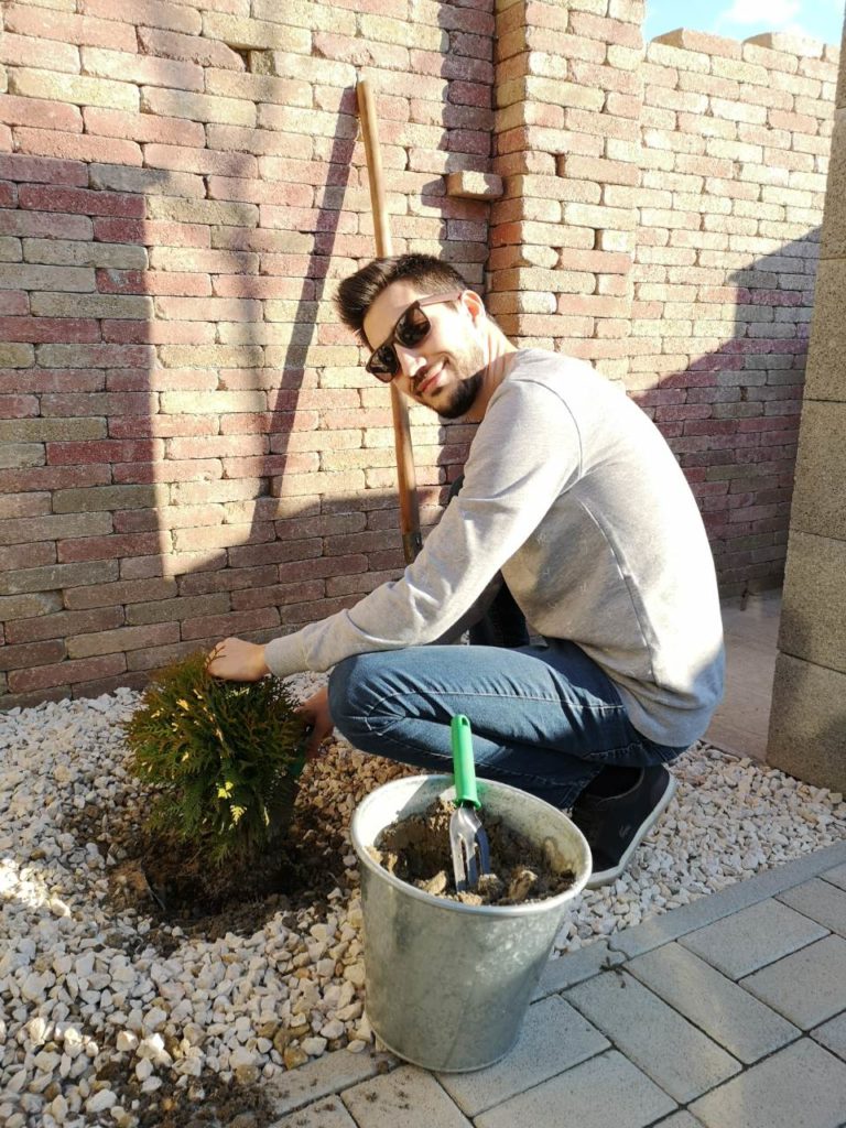 „Télen nem kezdtünk bele komolyabb munkába, csak tervezgettünk, most viszont, hogy itt a jó idő, végre nekiláthattunk. Azt már tudjuk, mi a cél: egy olyan helyet szeretnénk teremteni magunknak, ami a nyugalom szigete lesz, ahová jó hazajönni. Figyelembe véve a talaj és a hely adottságait, ciprusokkal, sziklakerttel, virágokkal és egy kis konyhakerttel is tervezünk. Ez a párom álma, ő szeretne különleges zöldségeket, fűszernövényeket termeszteni.”