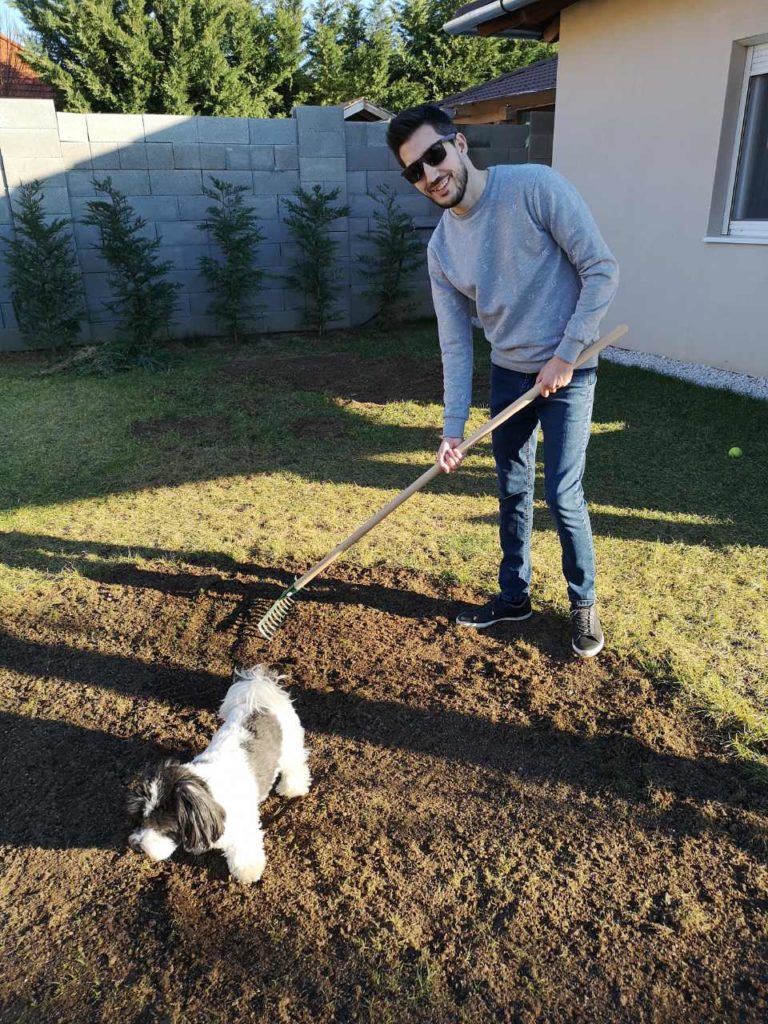 „Télen nem kezdtünk bele komolyabb munkába, csak tervezgettünk, most viszont, hogy itt a jó idő, végre nekiláthattunk. Azt már tudjuk, mi a cél: egy olyan helyet szeretnénk teremteni magunknak, ami a nyugalom szigete lesz, ahová jó hazajönni. Figyelembe véve a talaj és a hely adottságait, ciprusokkal, sziklakerttel, virágokkal és egy kis konyhakerttel is tervezünk. Ez a párom álma, ő szeretne különleges zöldségeket, fűszernövényeket termeszteni.”