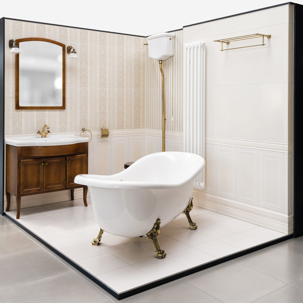 A viktoriánus hangulathoz elegendő a fehér árnyalatait használni a falfestésnél. A tiszta fehér vagy elefántcsont, lágy pasztellbeütéssel, könnyed hangulatot sugároz. Ha mindenképpen szeretnél valamilyen színt használni, úgy a pasztellkék vagy rózsaszín lehet a befutó, esetleg a natúr színek. A vintage fürdőszobába a tapéta is jó megoldás.