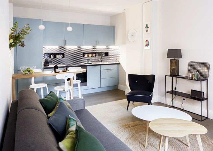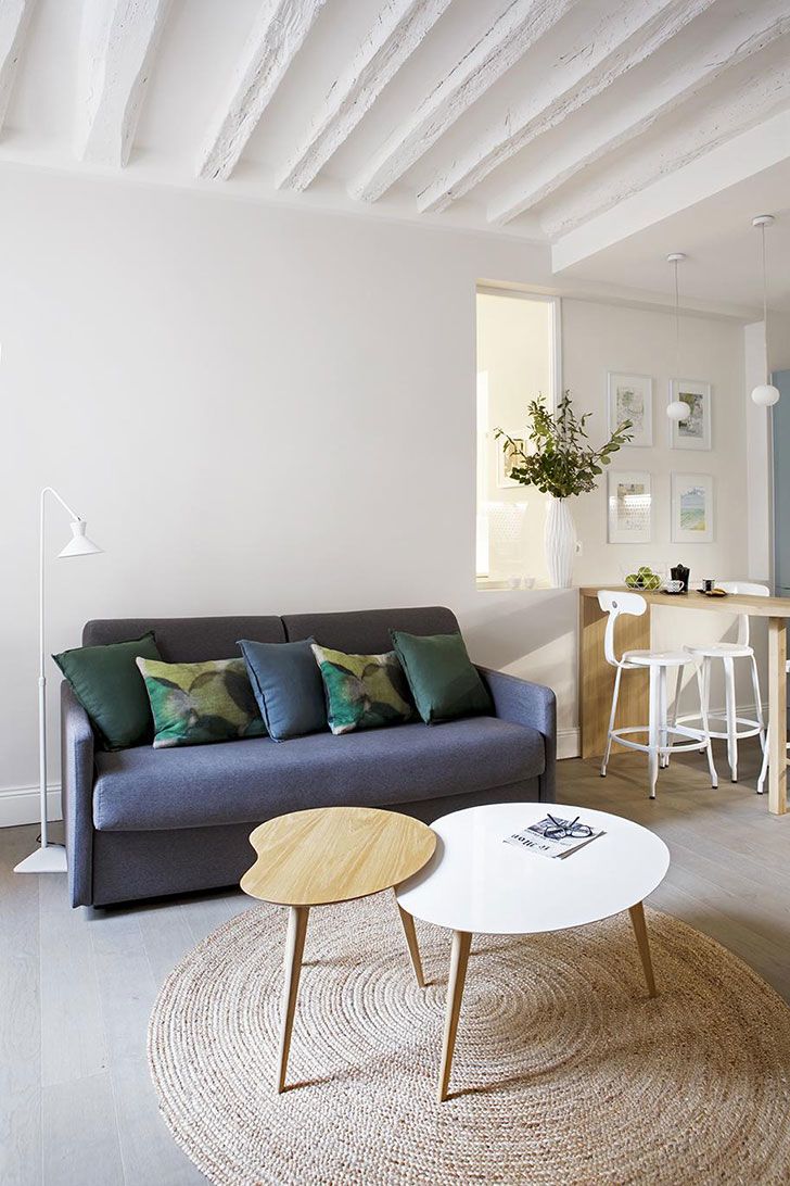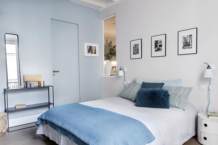 A kék és a fehér árnyalatai dominálnak ebben a kis párizsi, belvárosi otthonban.  Az apró részletekig kidolgozott lakásban a kényelem és az elegancia is fontos szerephez jutott, amit a minimalista stílus csak tovább emel.