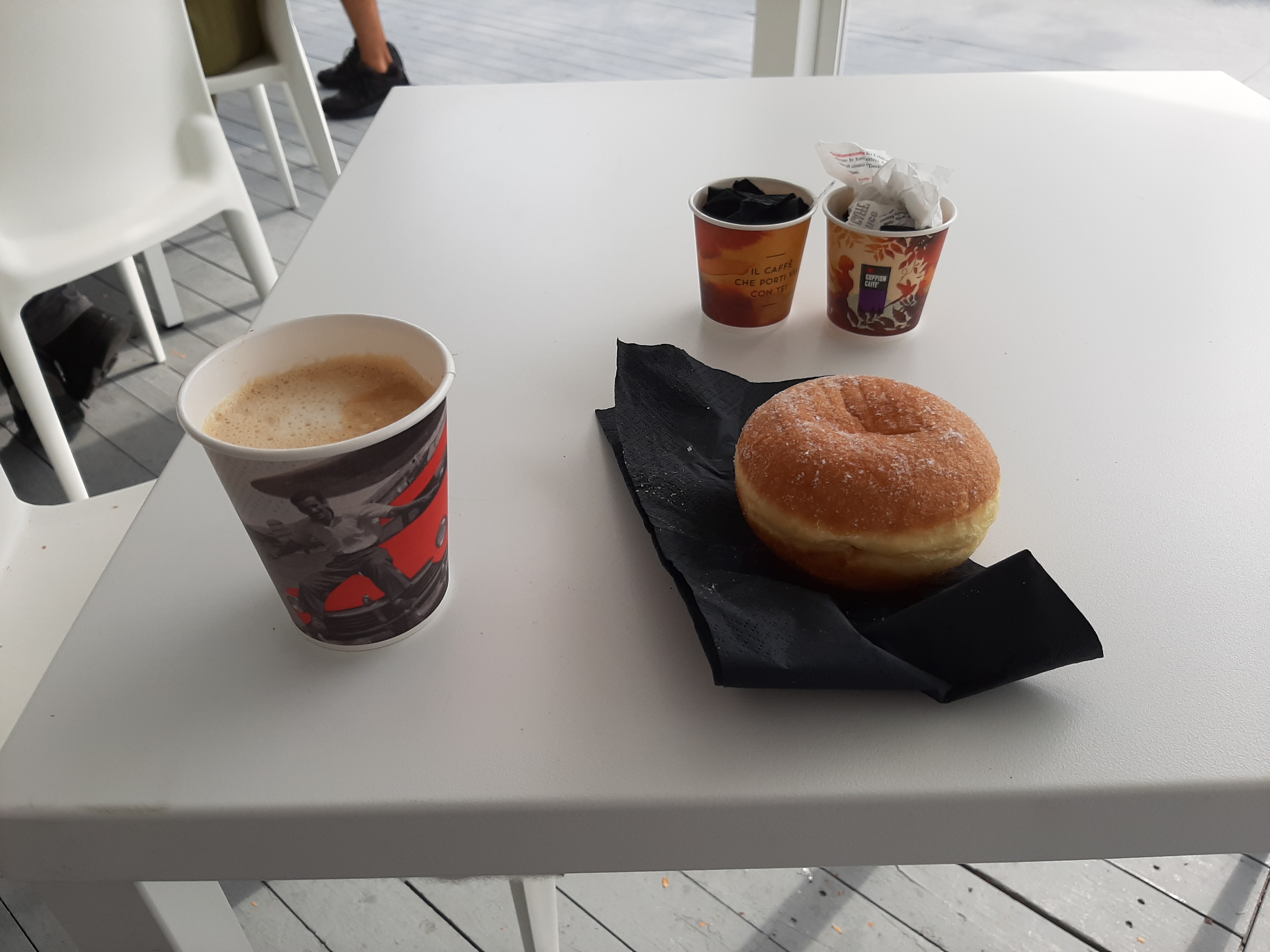 Ez pedig az én reggelim, amit vetítés előtt szoktam bedobni, hogy kibírjam valahogy a szokásos margherita pizzámig.