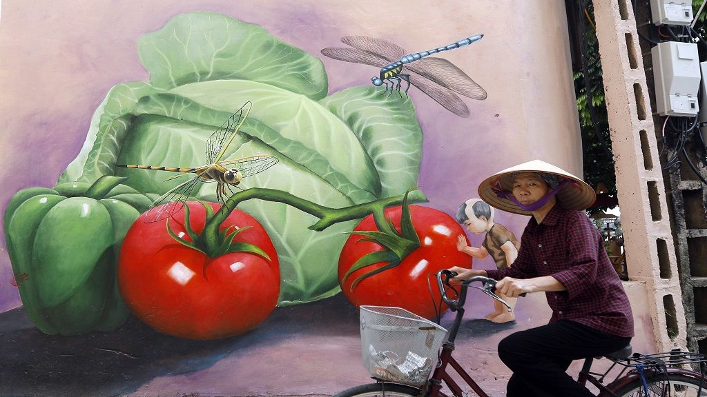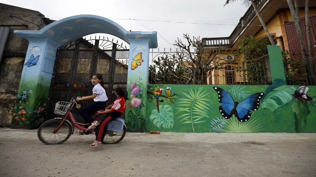 Az utóbbi hetekben csodájára járnak a vietnámi főváros, Hanoi közelében elterülő falucskának, ahol a helyiek egy kreatív megoldással dobták fel az unalmas, szürke házfalakat.