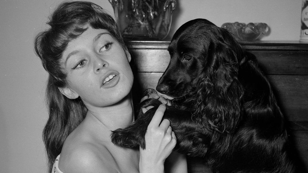 Illusztráció: Brigitte Bardot egy fekete cocker spániellel (forrás: Gaston Paris / Roger-Viollet via Europress)