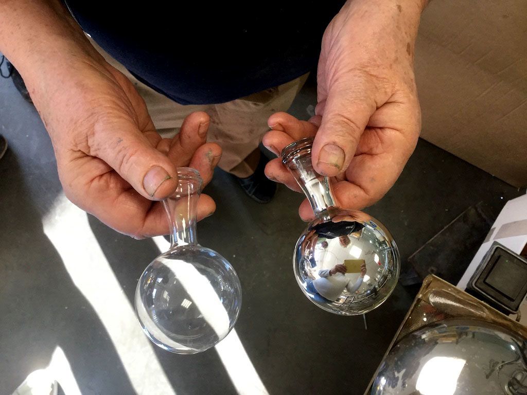 Szabó Lajost távozásom előtt arról kérdezem, mennyire nehéz jó szakembert találni manapság. Sajnos, mint bármelyik másik szakmánál, itt is nagy a munkaerőhiány. „Nincs üvegfúvó szakember, próbáltunk betanítani, de nem lehet. A kézi festésre is nehéz embert találni, mert más gömbre festeni, mint lapra. Jártunk képzőművészeti iskolában, de nem tudtak gömbre festeni. Egyszer 28 festő jött, egyetlenegy fiú maradt” – magyarázza Szabó úr, aki bár évtizedek óta űzi, még mindig imádja a hivatását.