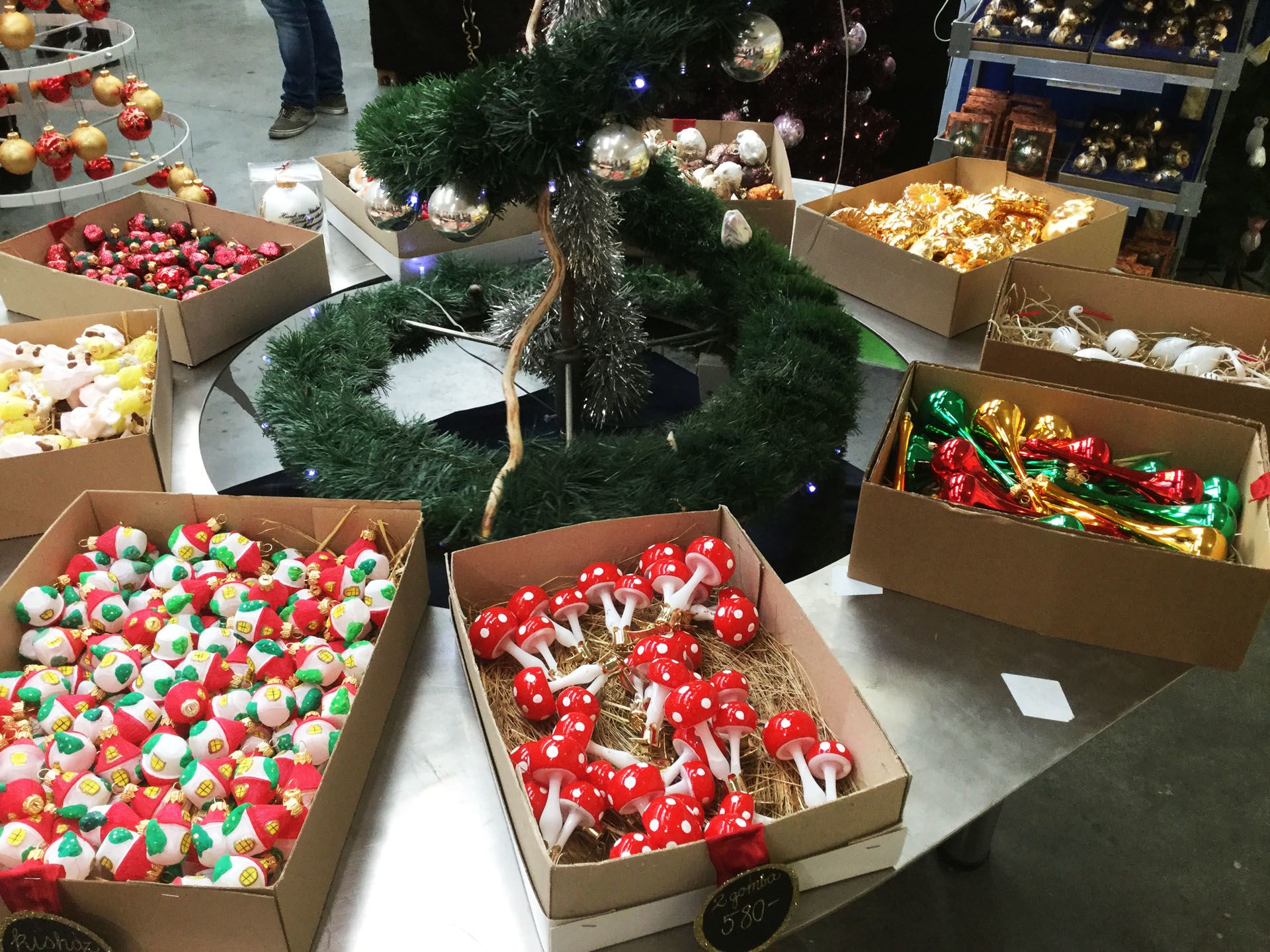 A karácsonyfadíszekhez az üveg kész áruként érkezik, gömb vagy cső formájában. A gömböket először ezüstözik, majd festékbe mártják és szárítják, ezután egy másik terembe kerülnek, ahol elhivatott és jó kézügyességű dolgozók dekorálják őket. A díszeket végül ellenőrzik, majd csomagolják, és nagykereskedésekbe szállítják. Egy részük azonban marad a tárnoki üzemben, karácsony előtt ugyanis két hónapig egyfajta turkáló működik itt, ahol az összes terméket meg lehet vásárolni. Rengeteg meseszép dísz közül lehet választani elérhető áron: van bagoly, macska, gomba, toboz és hagyományos színes gömbdísz is.