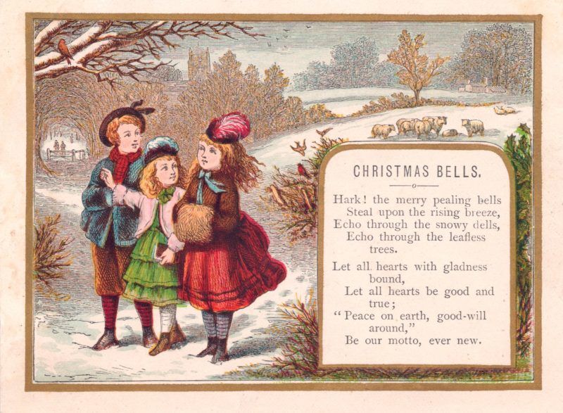 Boy and two girls in the snow on a Christmas card, with a verse about pealing bells., Image: 295753690, License: Rights-managed, Restrictions: , Model Release: no, Credit line: – / Mary Evans Picture Librar / Profimedia