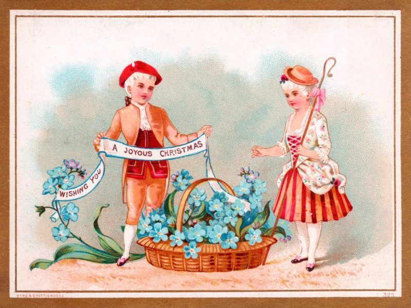 Boy and girl in historical costume with forget-me-nots on a Christmas card., Image: 295755258, License: Rights-managed, Restrictions: , Model Release: no, Credit line: – / Mary Evans Picture Librar / Profimedia
