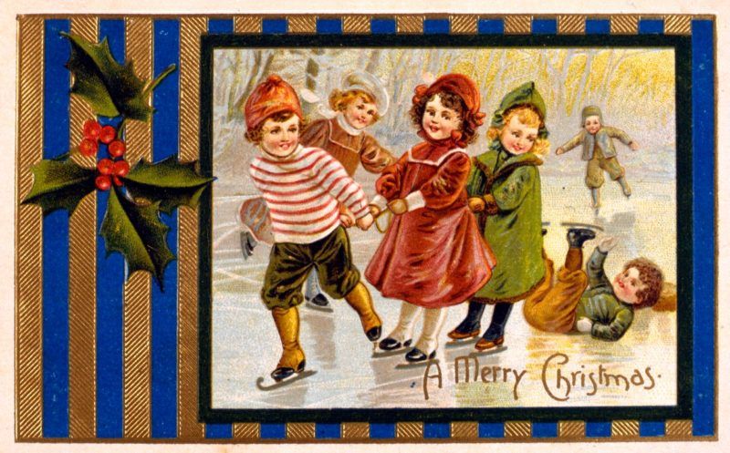 Children ice skating on a Christmas card., Image: 295906884, License: Rights-managed, Restrictions: , Model Release: no, Credit line: – / Mary Evans Picture Librar / Profimedia