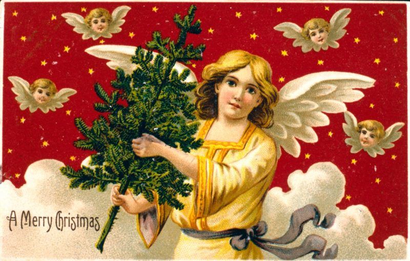 Angel with tree on a Christmas card., Image: 295907427, License: Rights-managed, Restrictions: , Model Release: no, Credit line: – / Mary Evans Picture Librar / Profimedia