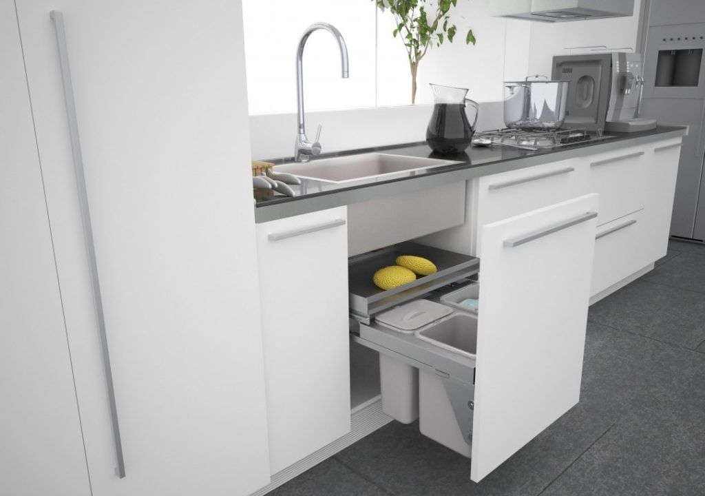 „A gyárak oldaláról viszont abszolút jelen van a környezettudatosság” – jegyzi meg Fibinger Zsuzsa, majd kiemeli azt is, hogy kicsiben azért a felhasználói oldalon is megjelenik ez az eszme, mégpedig a szelektív hulladékgyűjtés formájában. „Vannak már nagyon jó szeméttároló vasalatok, például olyanok, amik beépíthetők a mosogató alá, és kihúzhatók. Az ügyfél választhat, hogy mekkora méretet szeretne” – mondja Fibinger Zsuzsa, aki ma már szinte nem is tervez olyan konyhát, amibe ne kérnék ezt a megoldást.