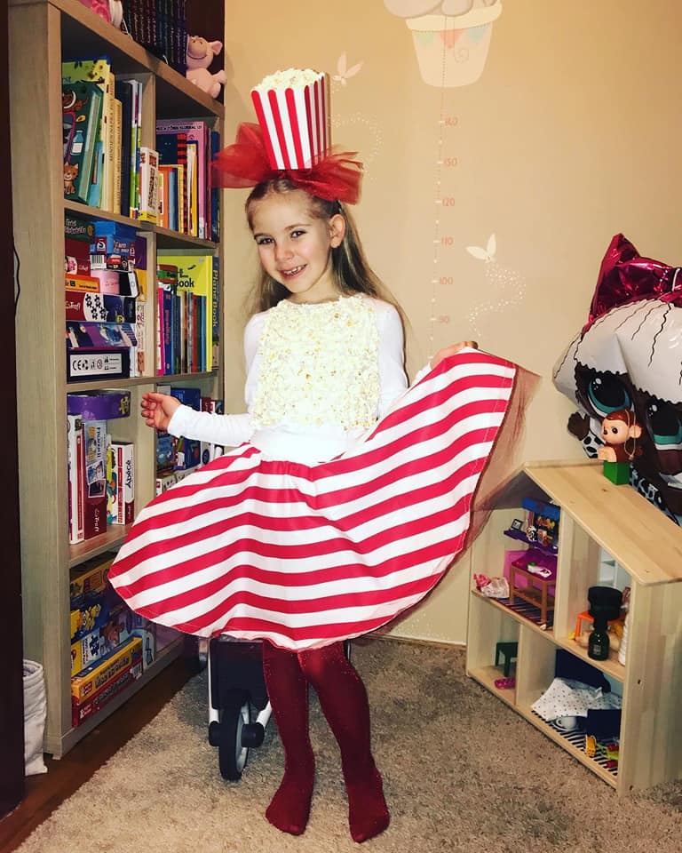 Nagy sikere volt Renáta lánya delfinidomár jelmezének, aminek szülői szemmel hatalmas előnye, hogy amennyire szokatlan választás, annyira egyszerű beszerezni a hozzávalókat. Andrea már nem volt ennyire egyszerű helyzetben, de az általa készített pattogatott kukorica jelmez parádésra sikerült, és még kedvesen csajos is lett.