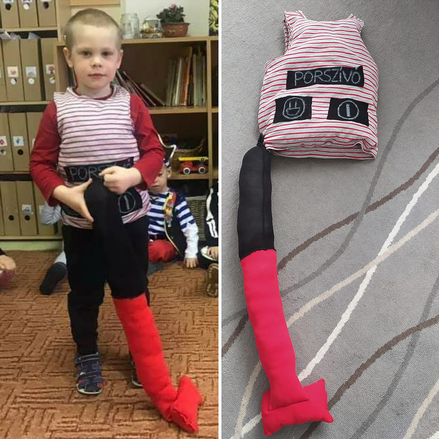 „A kisfiam porszívómániás, így tavaly porszívó volt. – meséli Alexandra – Én készítettem a jelmezét home made. Igaz, varrni nem tudok, de mindent a gyerekért, hát ez is sikerült. Számomra fontos volt az is, hogy ne csak látványos, de kényelmes is legyen a jelmez, tudjon benne egész nap játszani, bolondozni.”