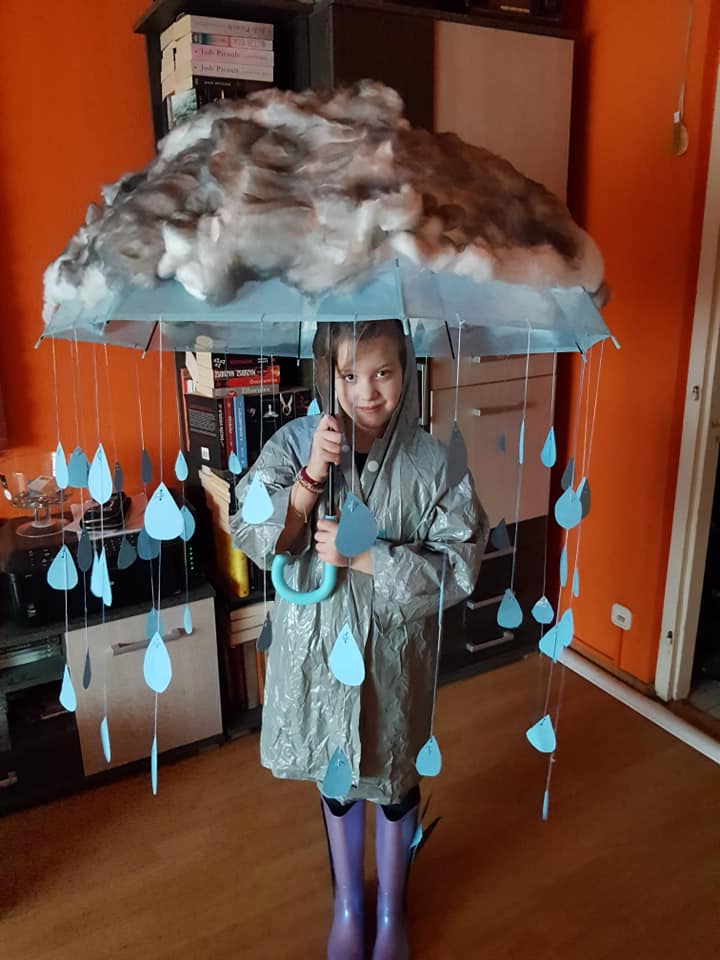 „Nagylányom inkább a csajos vonalat képviseli, ő medúza szeretett volna lenni.” – osztotta meg velünk Dóra a lenti fotót, és lám, egy esernyőből mi ki nem hozható! Ha nem medúza, hát vihar jelmez, mint Krisztináék esetén.