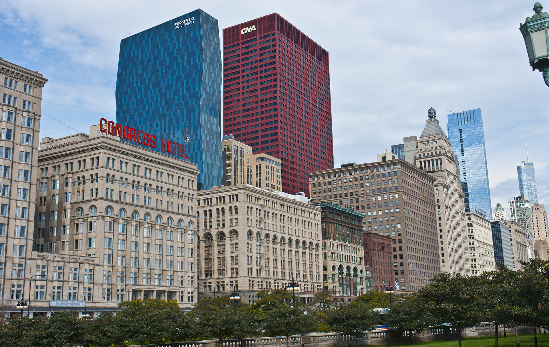 Szintén chichago-i „remekmű” a CNA Center 1972-ben átadott felhőkarcolója: a 44 emeletes épületet a Graham, Anderson, Probst & White cég tervezte. Élénkpirosra festették, így lehetetlen volt nem észrevenni, ahogy az is elég feltűnő volt, amikor 1999-ben az épület 29. emeletéről leszakadt egy nagy ablakdarab, és a földre zuhant, egy halálos áldozatot követelve. Mint kiderült, a hőtágulás okozta a tragédiát. Végül a 18 millió dolláros kártérítés után az épület minden egyes ablakát kicserélték, amiket a mai napig havonta ellenőriznek.