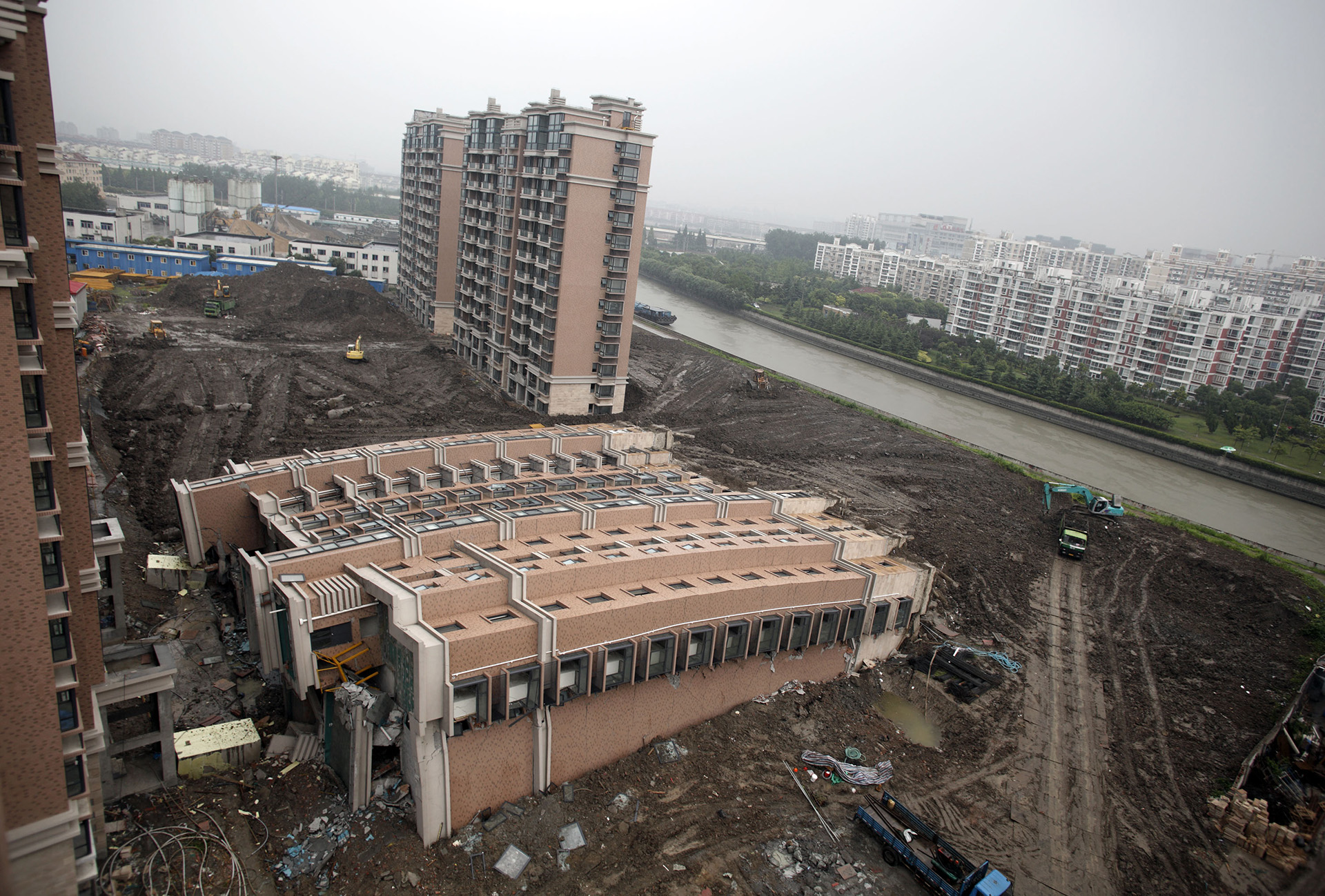 A Lotus Riverside esete valószínűleg a legtöbb építész rémálma, a tizenegy, 13 emeletes épületből álló lakópark egyik épülete ugyanis szabályosan kidőlt a talapzatból 2009. június 27-én. A szerencse a szerencsétlenségben, hogy elkerülte a szomszédos épületet, így nem történt meg a szörnyű dominóhatást, ami hatalmas károkat okozott volna.