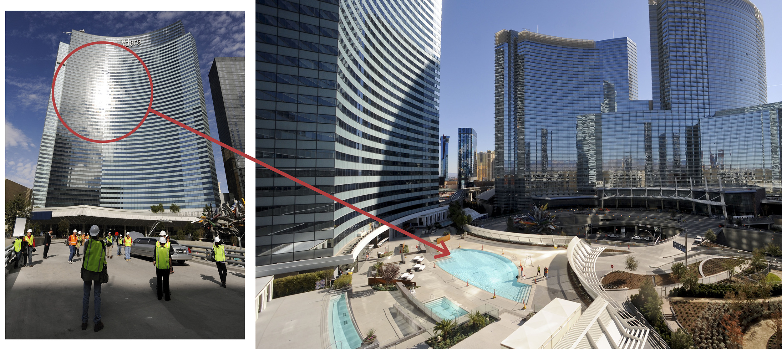 Nem igazán olyan luxuskényeztetésre vágytak, mint amit kaptak, azok a vendégek, akik a Las Vegas-i Vdara Hotel & Spa-ban szálltak meg pihenni, és úgy döntöttek, hogy a medence környékén napoznak egyet. A 2009 decemberében megnyílt szálloda ugyanis egyedi, ívelt szerkezetű, amitől bombajól néz ki, ám a tervezése során nem számítottak arra, hogy a hatalmas homorú felület, mint egy óriási nagyító össze fogja gyűjteni a napsugarat és a fénycsóvát a szálloda medencéjének területére, vagyis az ott napozó vendégekre fogja sugározni. Így történhetett meg, hogy az ügyvéd Bill Pintasnak megégett a haja és megolvadt a nála lévő műanyag zacskó, amikor a szálloda medencéjénél „hűsölt”. Elmesélése szerint, amikor hátradőlt a fotelben, hirtelen olyan forróság érte, ami szabályosan megperzselte a haját, és megolvasztotta a műanyag zacskót, amelyben az újságját tartotta. Amikor értesítette a szálloda személyzetét, azok nevetve elismerték, hogy az úgynevezett „halálos sugár” gyakori jelenség náluk. További vizsgálatok kiderítették, hogy a szálloda nagyon is tisztában volt a forró sugarakkal, és végül, a sok panasz hatására, tett néhány lépést a probléma orvoslására, például az ablakokat fóliával fedték le. Ez azonban annyit ért, mint halottnak a csók, nem csökkentette jelentősen a hatást, és a szálloda vendégei a mai napig forróságot tapasztalhatnak az üvegbúra alatt.